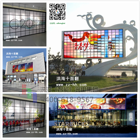 洪海光電集團(tuán)設(shè)計師團(tuán)隊最新研發(fā)的機(jī)械翻頁十面翻以一變十的廣告效應(yīng),充分利用現(xiàn)有黃金廣告位,給您帶來更大的廣告收益,幾十種類似多米諾骨牌的翻轉(zhuǎn)方式,以巨大的視覺沖擊,牢牢吸引人的目光!