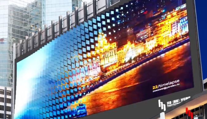 外觀創新:廣告設備的形狀已從最初的菱形,扇形,球形和其他“形狀”變為表達形式的創新,例如玻璃屏幕,薄膜屏幕,網格屏幕,地磚屏,旋轉屏、矩陣屏、跳舞屏、波浪屏、交互式屏幕,幕墻屏幕,透明屏幕等等發生變化。 例如,洪海光電集團有限公司在中東國際阿聯酋迪拜的國際車展的凹凸顯示屏。